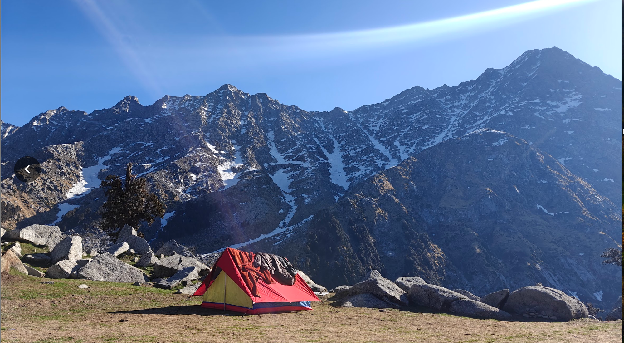 We stayed at the Snowline Quest Himalayas camp — a cozy setup just before the actual snowline. In the place we found 3 camps, and chose the middle one, due less people and better views. There were only a few others there: an older couple from Holland and another indian couple. The air was fresh, the vibe mellow. We checked our tent, packed with four sleeping bags for two people. It cost around ₹1000–1500 (11-15eur) per person, including a warm dinner and simple breakfast — dal, Maggie, and eggs.